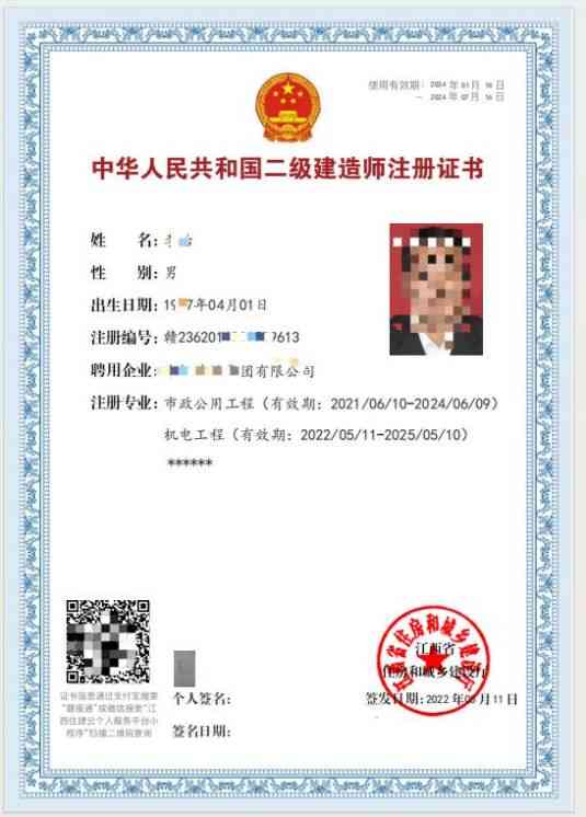 3、二級注冊證書新版電子證書換發(fā)成功后,老版電子證書失效(電子證書右上角使用有效期按照部里文件要求,新增電子證照的使用期限,使用期限開始時間是證書加注時間,結(jié)束時間即往后推179天,故證照有效期是180天)。